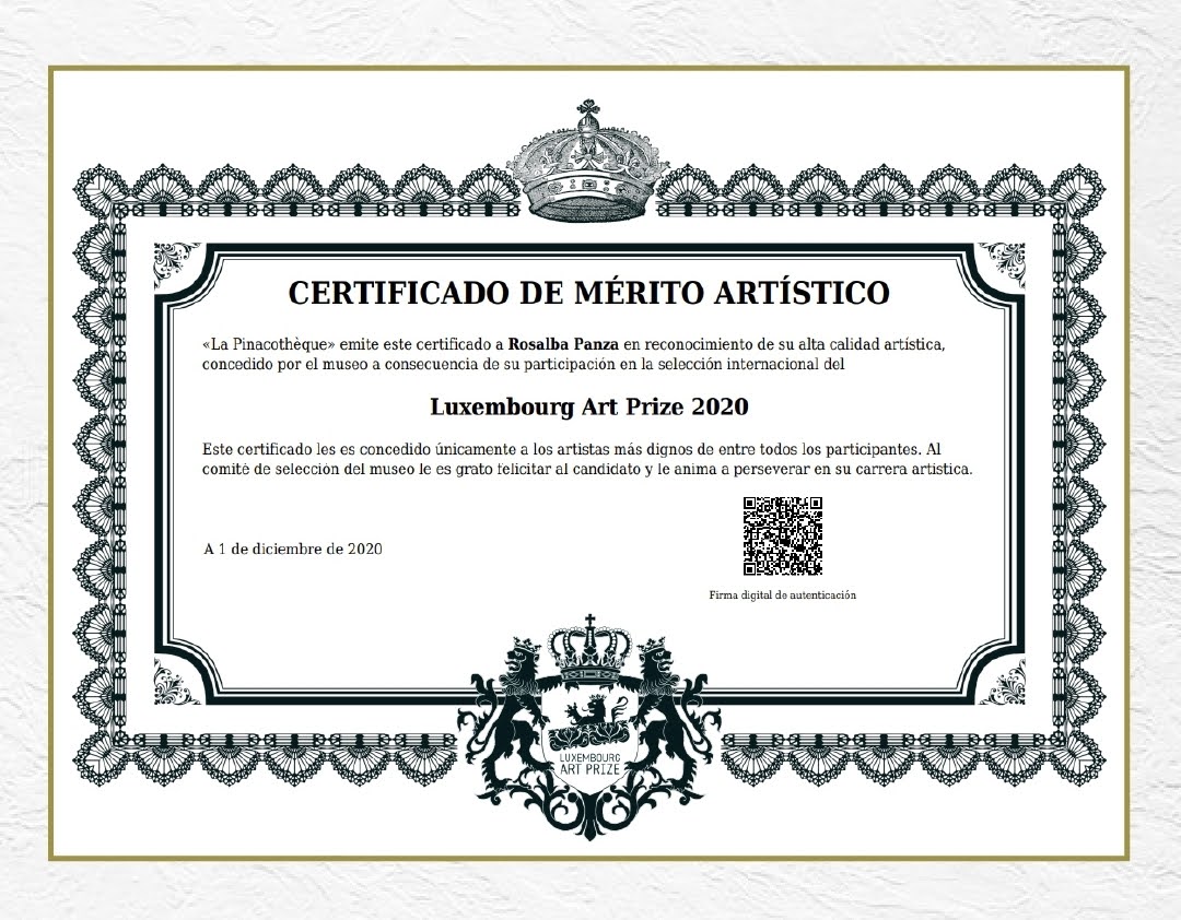 Certificados al MÉRITO ARTÍSTICO otorgados por la PINACOTHEQUE DE LUXEMBURGO