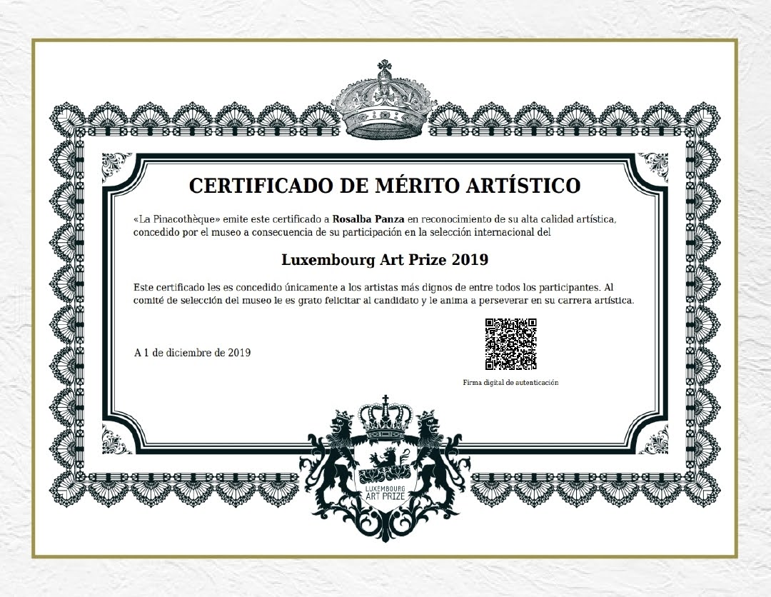 Certificados al MÉRITO ARTÍSTICO otorgados por la PINACOTHEQUE DE LUXEMBURGO