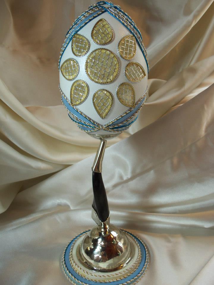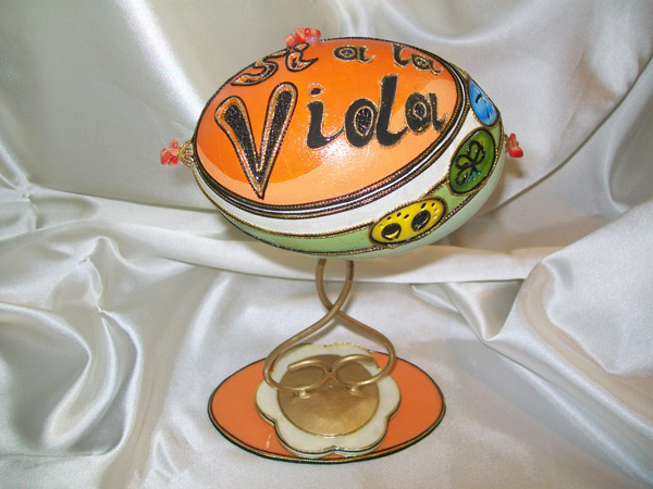Premio a la CREATIVIDAD con el Pesebre "ARGENTO" realizado con cáscaras de huevos de ñandú, pies de alpaca y asta y figuras de resina en su interior. El ángel es una figura de vidrio.
