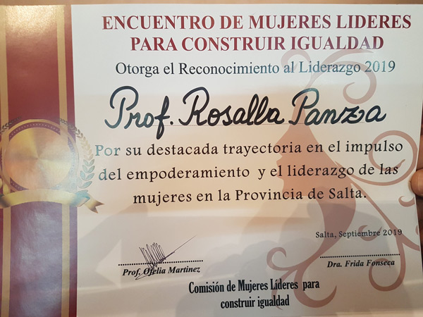 Por la destacada trayectoria en el impulso del empoderamiento y el liderazgo de las mujeres en la Provincia de Salta, en el marco del Encuentro de Mujeres Lideres para construir igualdad